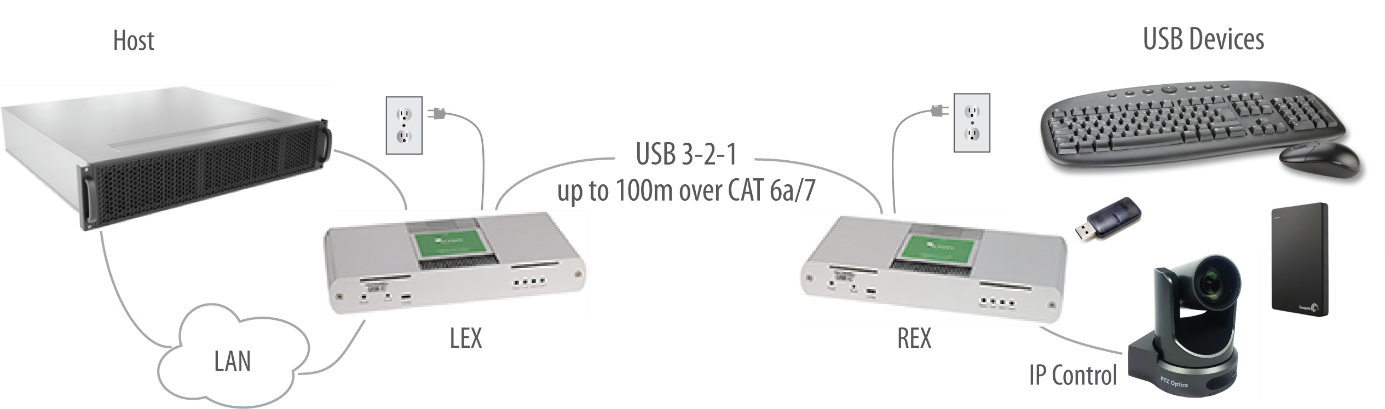 Extender 4 USB 3.1 ports, USB 2.0 and 1.1 via twisted pair.
